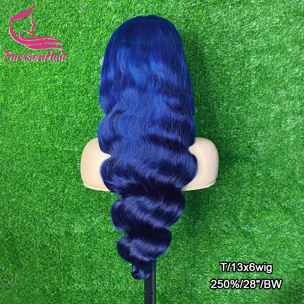 200% Density Dark Blue 13x4 Transparent Lace Front Human Hair Wigs Pre-Plucking Raw Body Wave Midnight Blue Lace Frontal Wig