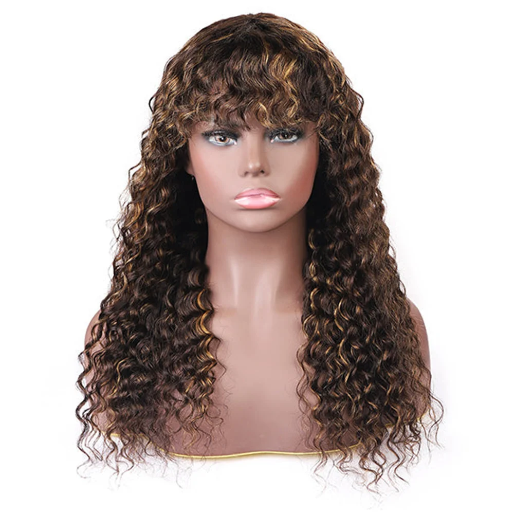4/27 Deep Wave Glueless Human Hair Wig With Bangs Drawsting Ready To Go 5x5 Lace Closure Wigs Human Hair Lace Front Wig No Glue