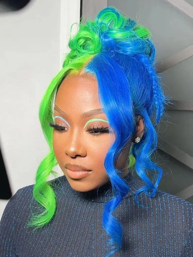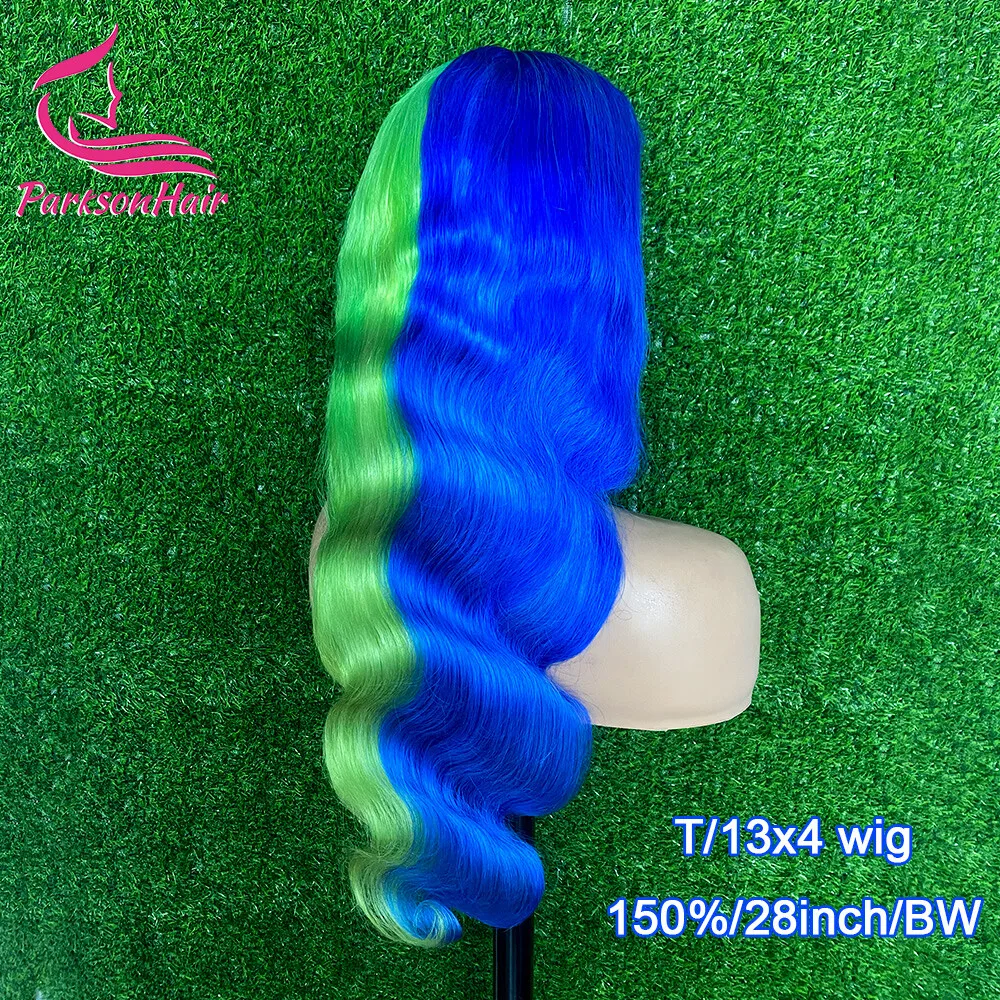 Blonde Colored 13x4 13x6 Transparent Lace Front Human Hair Wig Body Wave Blue With Green Lace Frontal Wig For Women Pre-Plucked