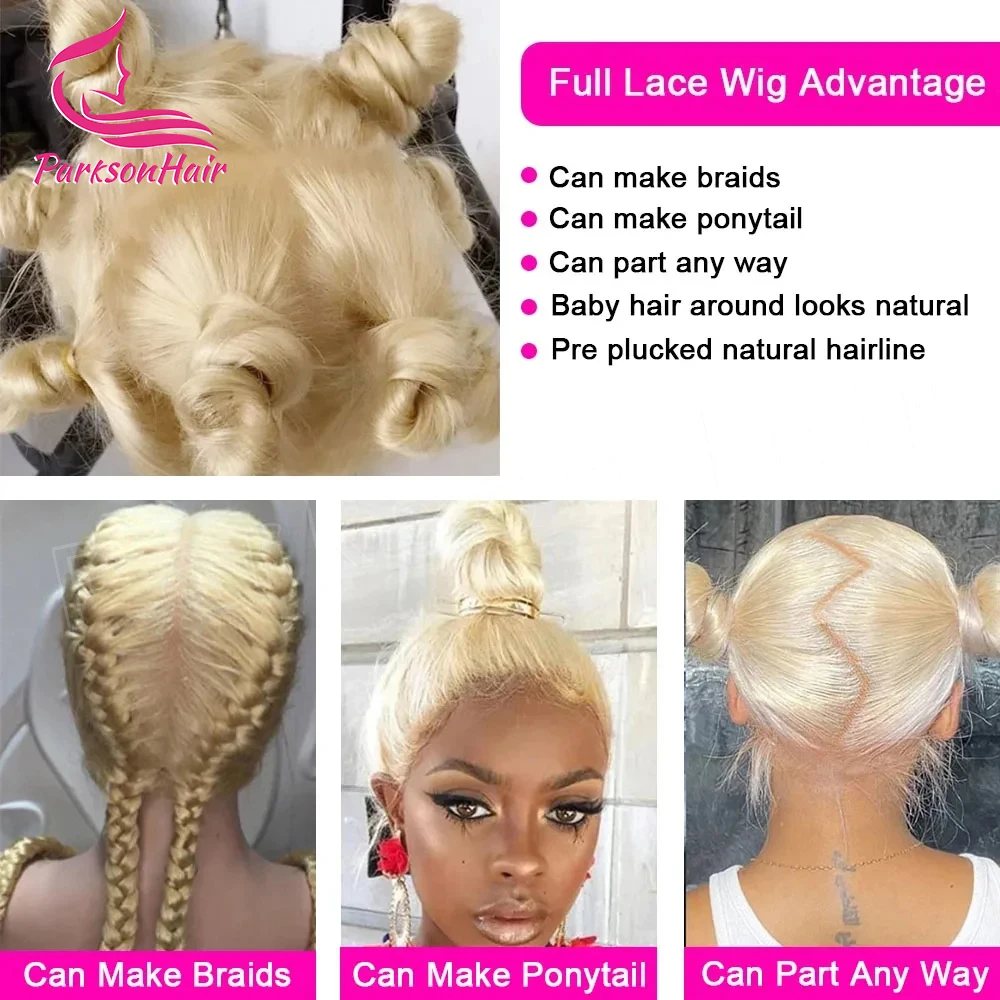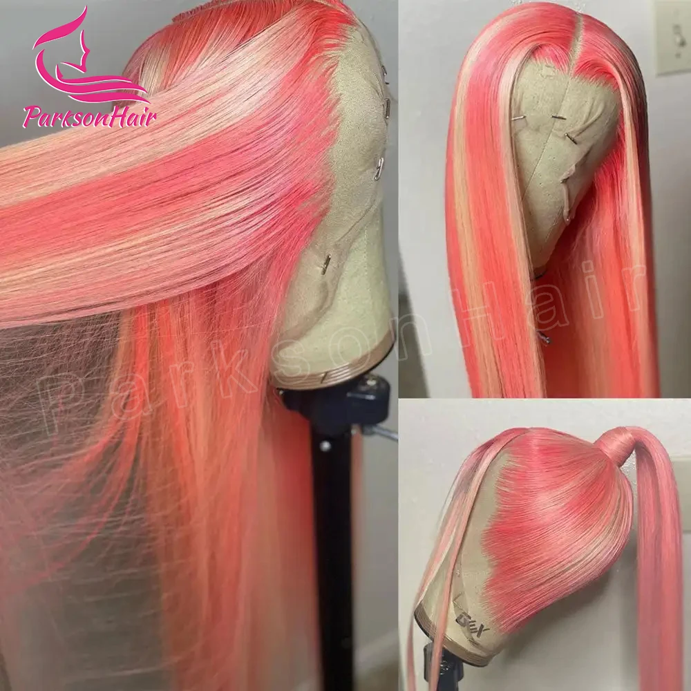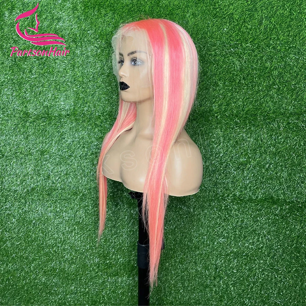 Highlights Pink HD Transparent Full Lace Front Wigs For Women 613 Colored 13x4 Lace Front Blonde Human Hair Pre Plucked Wigs 250