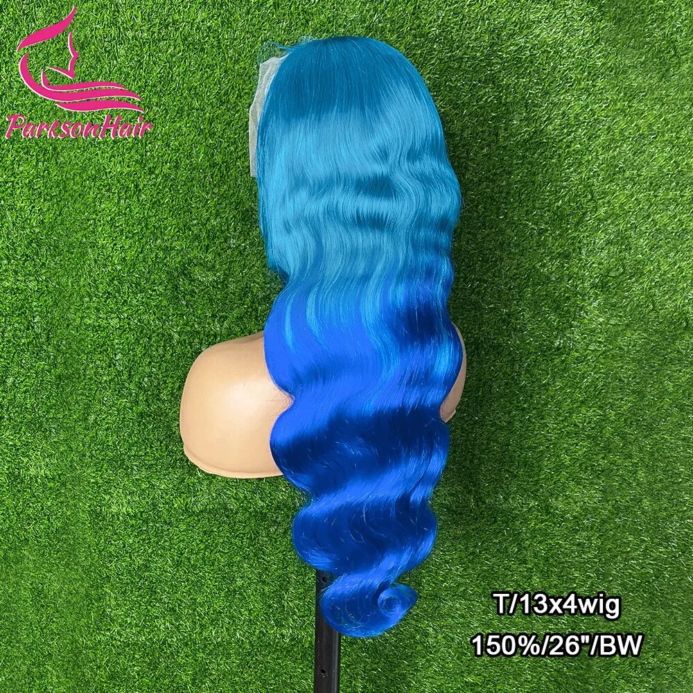 Ombre Blue 13x4 13x6 Lace Frontal Human Hair Wigs For Women Body Wave Lace Front Wigs Brazilian Pre Plucked Raw Human Hair Wigs