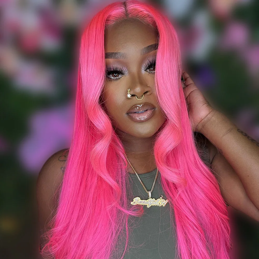 ParksoHair Dark Pink Human Hair Wigs Transparent 13x4 Lace Front Wigs 150% Body Wave Wig Pre-Plucking For Women
