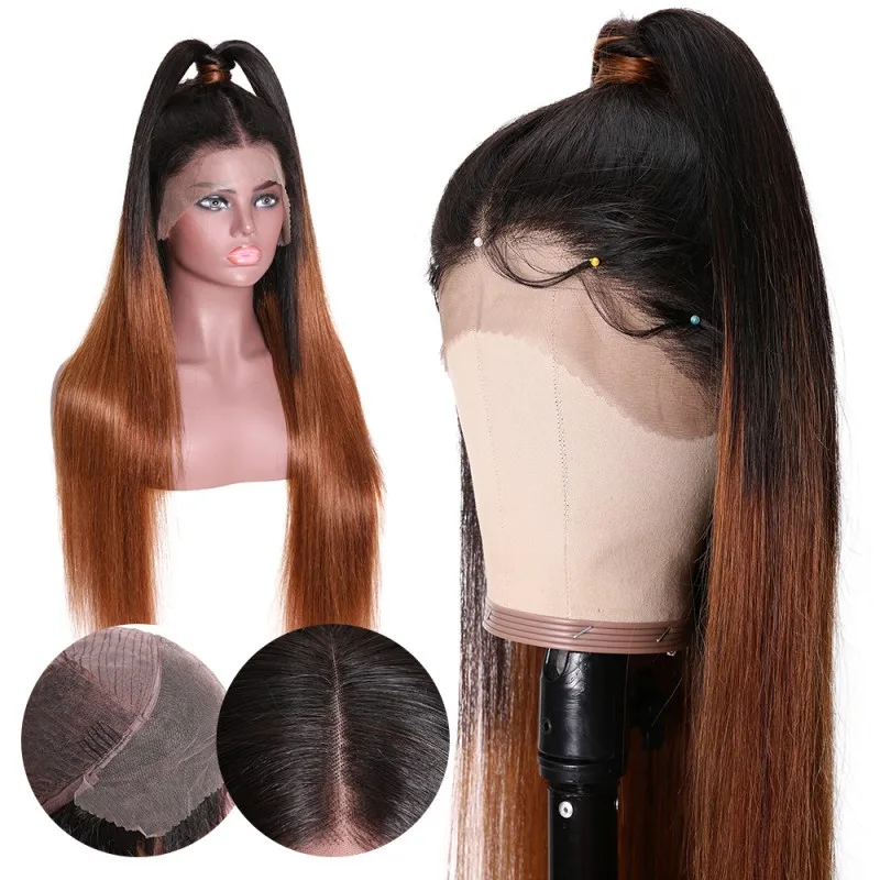 ParksonHair Omber Black Brown 13x4 13x6 Transparent Full Lace Frontal Wigs Pre-Plucking Straight Human Hair Wigs For Women