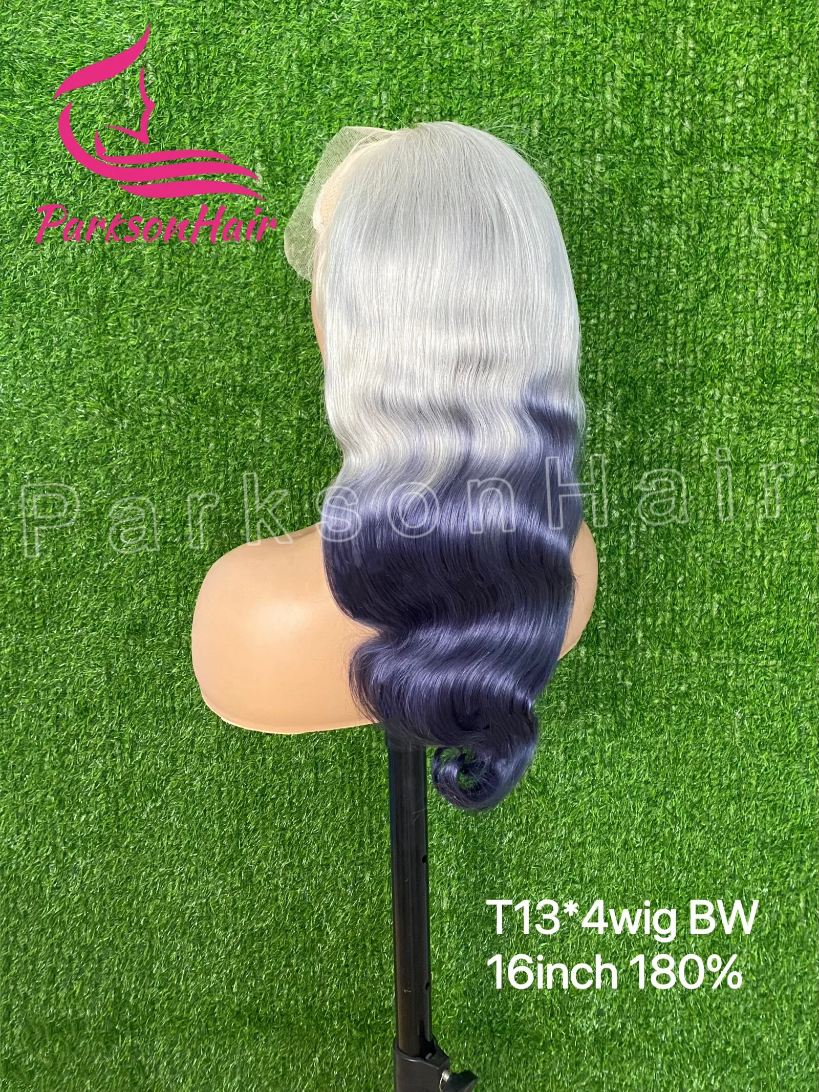 ParksonHair Ombre Grey 13x4 Regular Lace Front Wig Body Wave Pre Plucked Transparent Lace Front Human Hair Wig For Women 180%